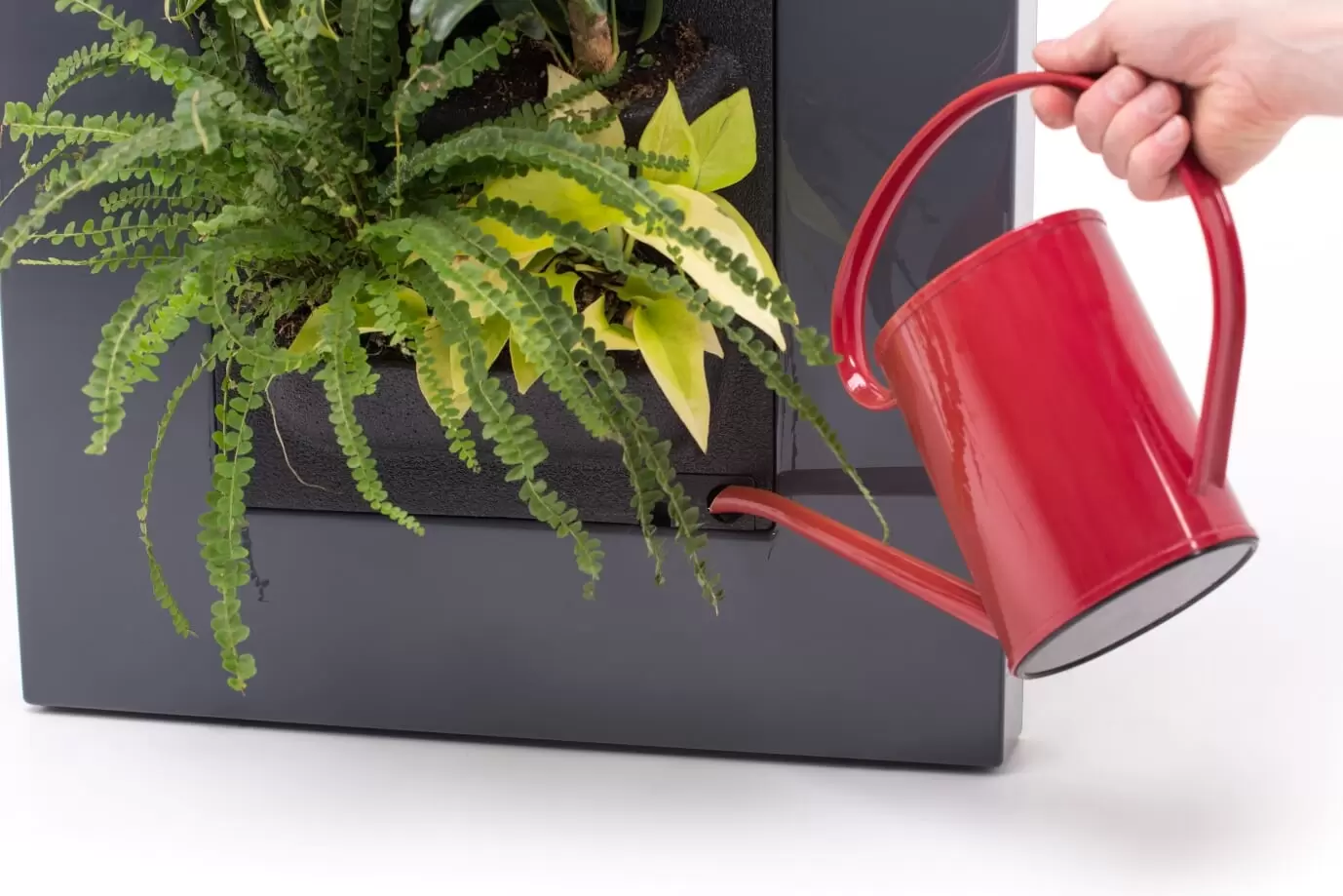 Om de planten in de LivePicture Go te verzorgen heb je geen groene vingers nodig. Hij is namelijk voorzien van een ingebouwd waterreservoir mét leeg- en volmelder. De leegmelder, in de vorm van een gietertje, zakt onderuit de lijst wanneer het water opraakt. Zo zie je meteen wanneer het reservoir bijgevuld dient te worden. Het vullen van het waterreservoir kan eenvoudig met een gieter. Is het reservoir vol, dan meldt de volmelder dat.