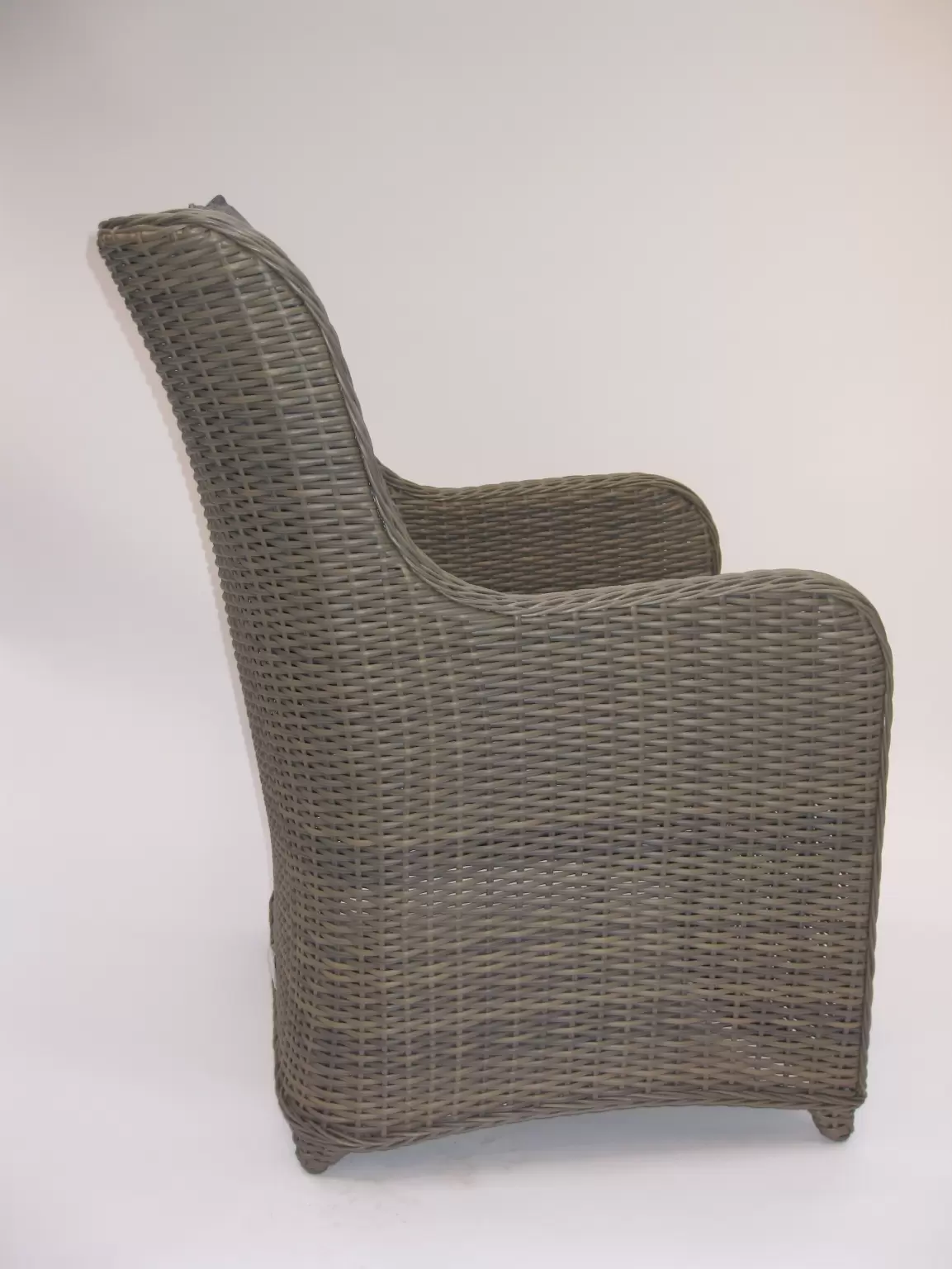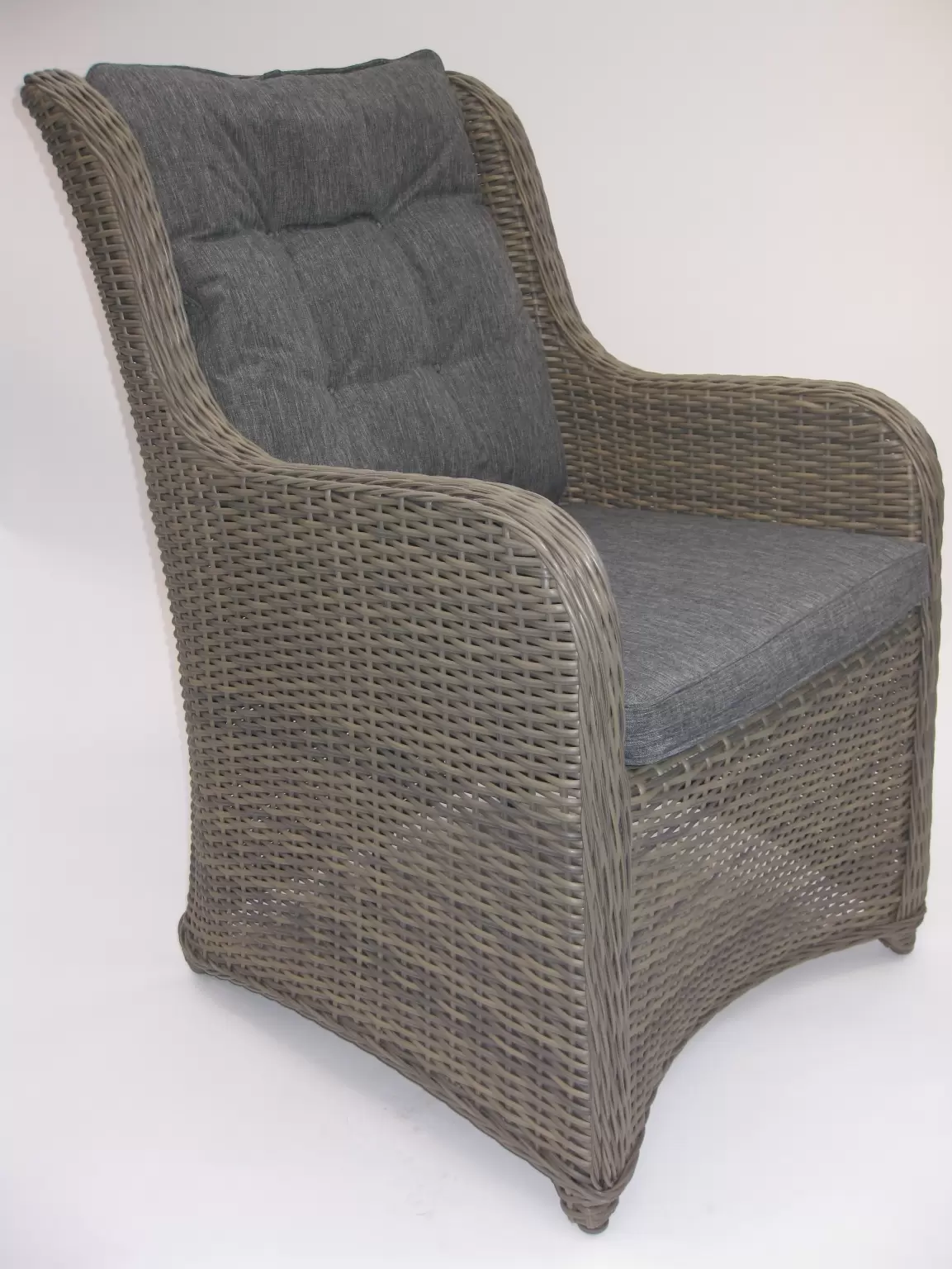 Zeer mooie diningstoel met een uitstekend zitcomfort. Frame is van aluminium met hoogwaardig 5mm nature grey halfrond kunststof wicker. Stoel wordt geleverd inclusief zit- en rugkussen in de kleur antraciet grey. Wij geven op deze stoel 3 jaar garantie.