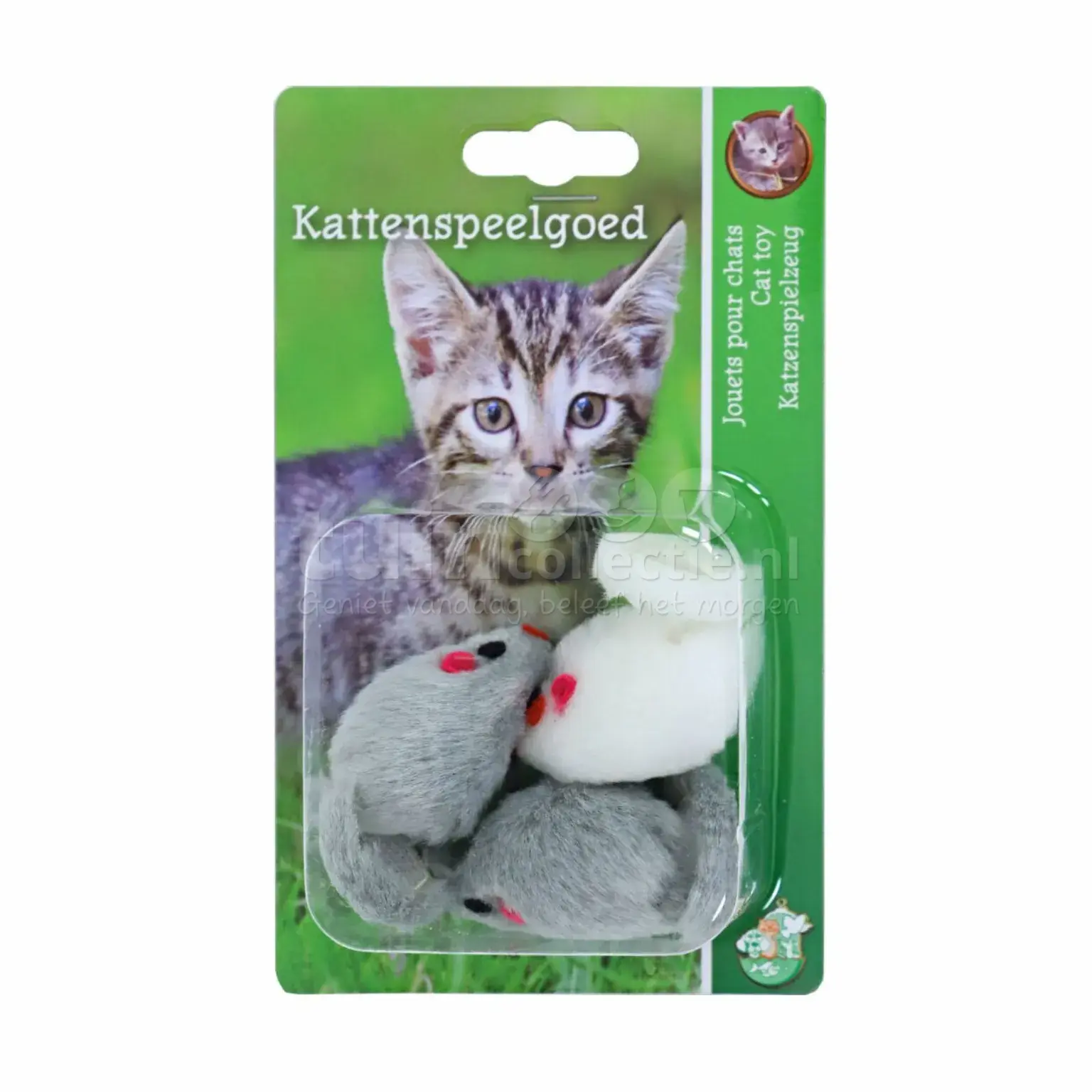 Boon Kattenspeelgoed Bontmuis Grijs/Wit 5cm 3st
