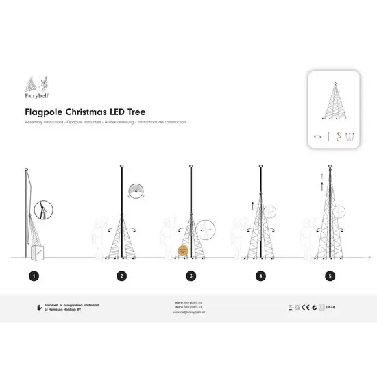 Laat jouw voortuin of bedrijfstuin stralen tijdens de kerstperiode met de Fairybell Outdoor Christmas LED Trees. Deze Fairybell kerstboom met 1500 LED lampjes in de kleur warm wit heeft een hoogte van maar liefst 7 meter. De onderzijde van de boom heeft een diameter van 3,5 meter. De kerstboom is opgebouwd uit een aantal verticale banden met daaromheen de lichtstrengen. De lichtstrengen worden aangesloten op een 31 volt weerbestendige IP44 transformator die makkelijk op het stroomnet kan worden aangesloten. De Fairybell kerstboom is eenvoudig, zonder gereedschap te installeren en omhoog te hijsen langs een vlaggenmast. Ben je niet in het bezit van een vlaggenmast? Bestel dan de Fairybell Deelbare vlaggenmast erbij!